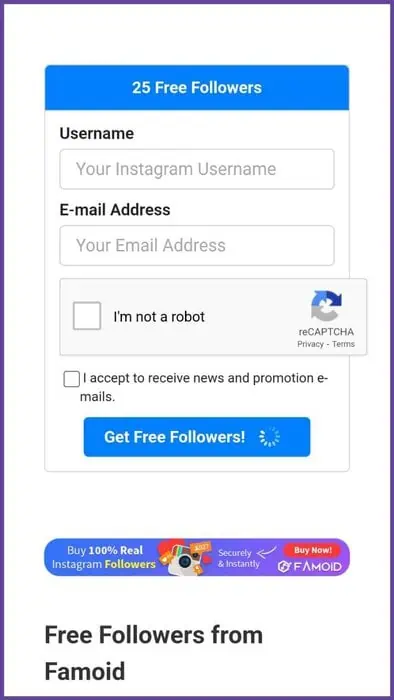 Complete the Verification: Click on “I am not a robot” and check the small box below. Then, click on “Get Free Followers.”
